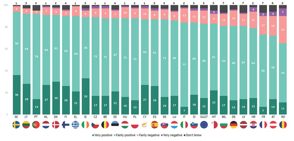 Z najnovšieho prieskumu Eurobarometra o vedomostiach európskych občanov a ich postojoch k vede a technike, ktorý bol uverejnený 4.2.2025, vyplýva, že viac ako 8 z 10 občanov (83 %) si myslí, že celkový vplyv vedy a techniky je pozitívny. Dve tretiny respondentov (67 %) rovnako súhlasia s tým, že veda a technika uľahčujú náš život, sú zdravšie a pohodlnejšie.