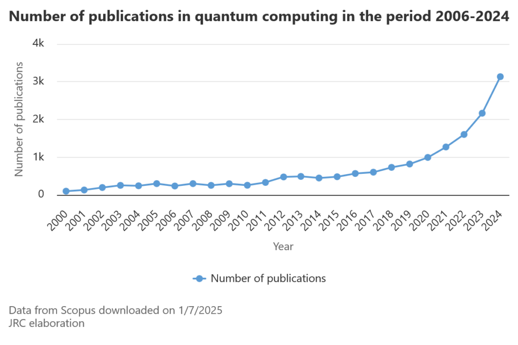 Počet publikácii v oblasti kvantových technológií v rokoch 2006 – 2024. Zdroj: JRC