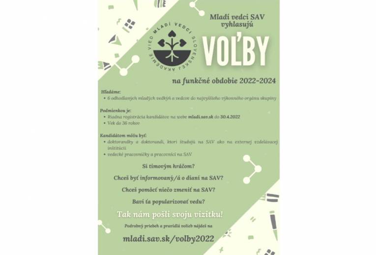 Mladí vedci SAV vyhlasujú voľby na funkčné obdobie 2022 – 2024.