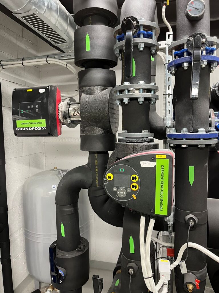 V objekte sa nachádzajú tepelné čerpadlá (2×72 kWh) typ zem – voda, zdrojom tepla a chladu sú 110 m hlboké tzv. suché geotermálne vrty (pod objektom budovy je celkovo 24 geotermálnych vrtov), ktoré poskytujú efektívne a ekologické riešenie pre kúrenie a chladenie budov. Táto technológia funguje na princípe výmeny tepla medzi budovou a zemou, významne znižuje náklady na energie a minimalizuje dopad na životné prostredie.