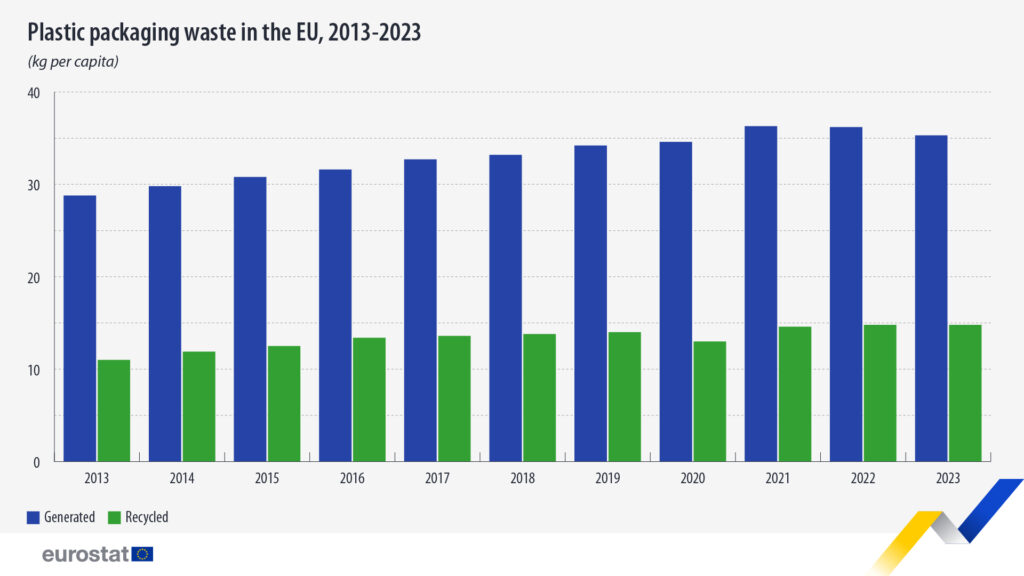 Plastic packaging waste in the EU: 35.3 kg per person