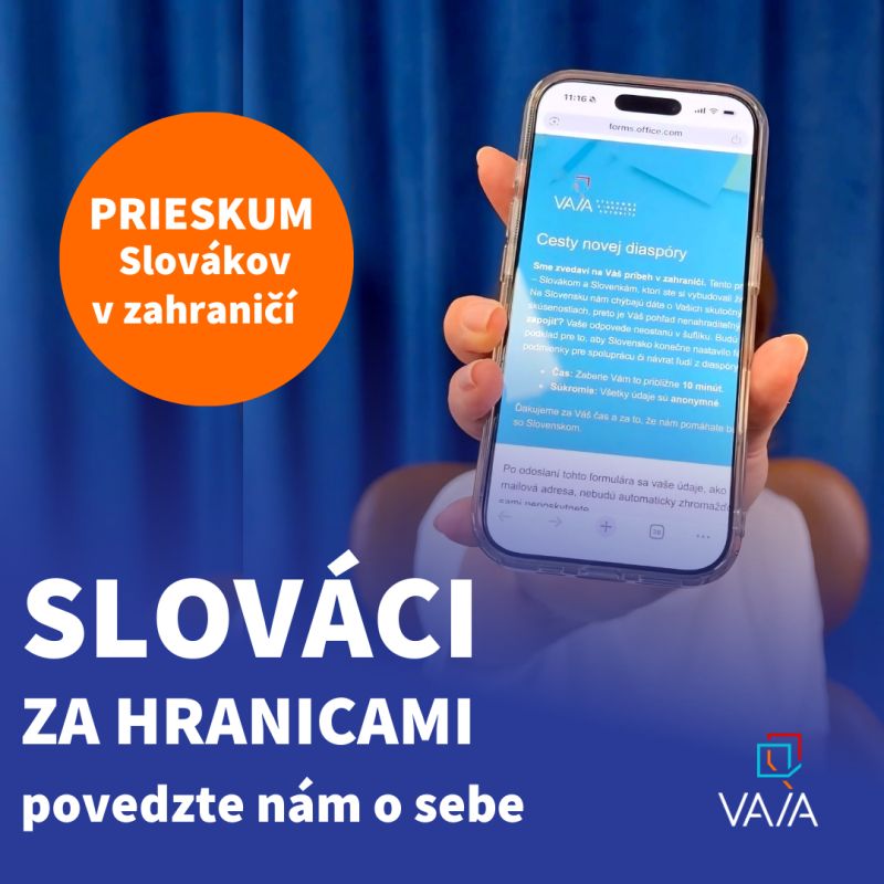 Výskumná a inovačná autorita (VAIA) preto spúšťa prieskum medzi Slovákmi žijúcimi v zahraničí. Jeho cieľom je lepšie porozumieť skúsenostiam našich krajanov, ich potrebám a tomu, ako môžeme zmysluplne posilniť ich prepojenie so Slovenskom.