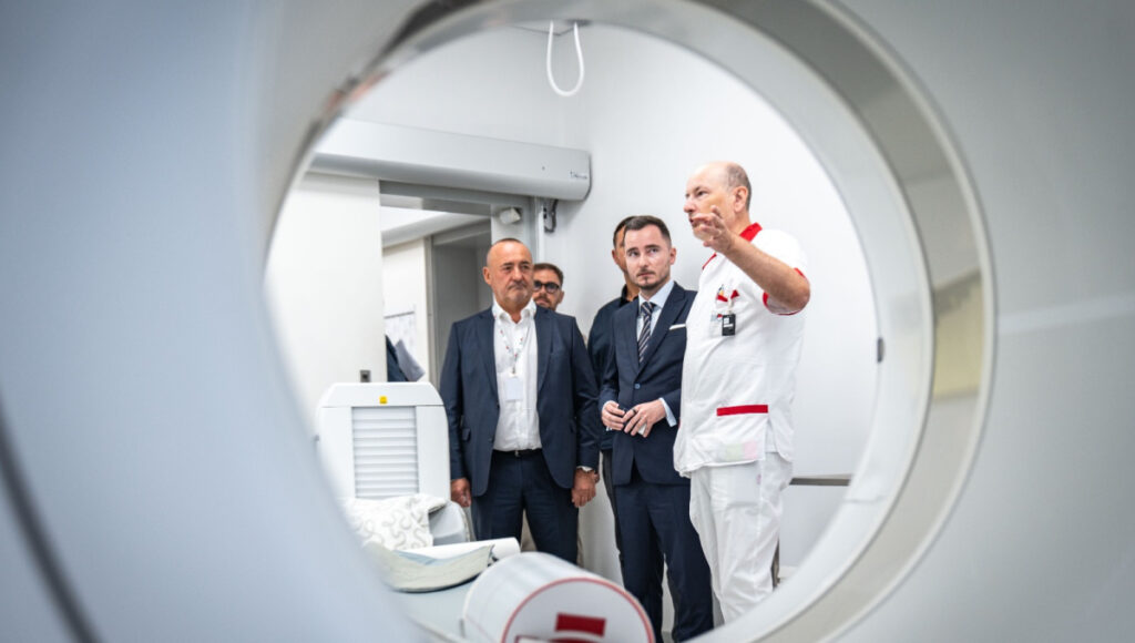 Súčasťou návštevy spoločnosti v bratislavskej Karlovej Vsi bola aj obhliadka priestorov rôznych pracovísk – ambulantného zdravotníckeho zariadenia, pracoviska na výrobu rádiofarmák či útvar kontroly kvality.