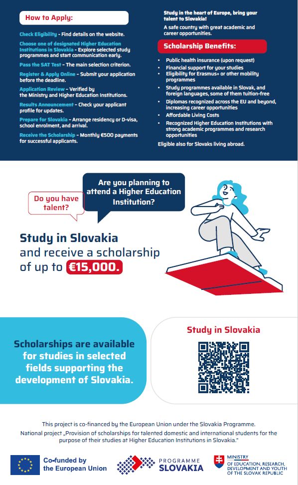Poznáte niekoho, kto chce študovať na Slovensku? Dajte mu vedieť o tejto príležitosti! Slovensko má čo ponúknuť.