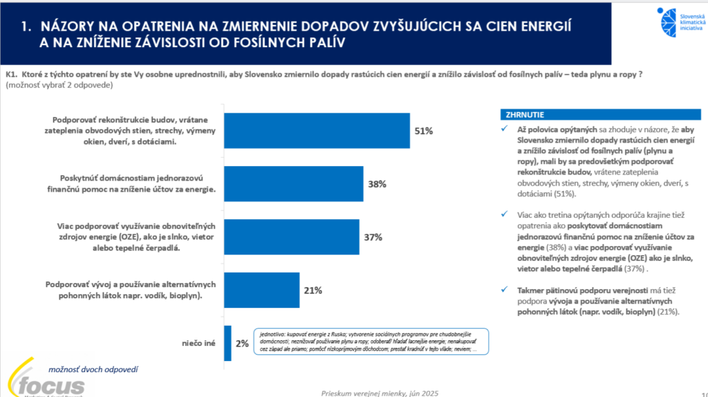 Z výsledkov prieskumu zároveň vyplýva, že verejnosť je ochotná zmeniť spôsob vykurovania najmä vtedy, ak štát poskytne finančný stimul. Tradičné riešenia ako plynové kotly či kúrenie drevom postupne ustupujú. Až 29 % respondentov sa však k výberu technológie nevedelo vyjadriť, čo poukazuje na potrebu intenzívnejšej informačnej kampane o dostupných možnostiach.
