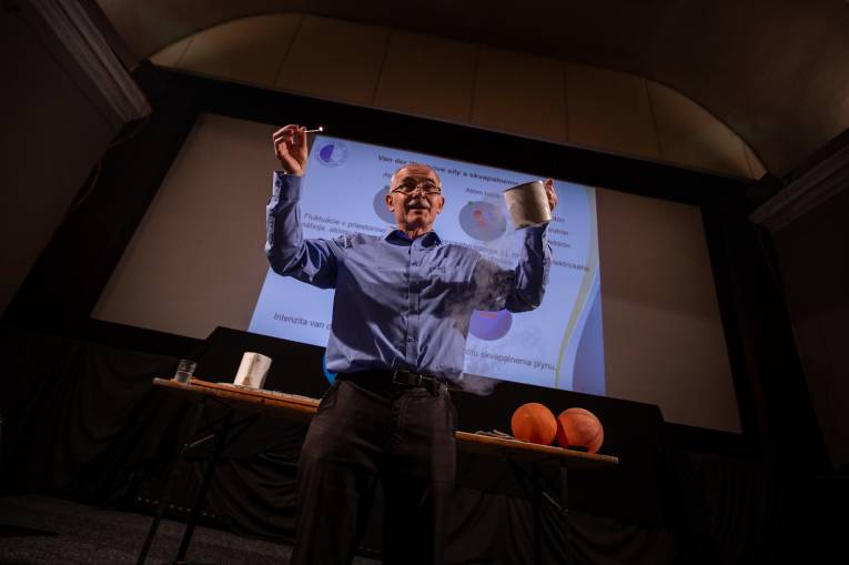Peter Skyba vo svojej prednáške tiež vysvetlil čo sa deje v kovoch, keď teplota klesá, čo spája fyziku vysokých energií a kozmológiu s fyzikou ultra nízkych teplôt a neobišiel ani tému kvantových nanotechnológií a kvantových počítačov.