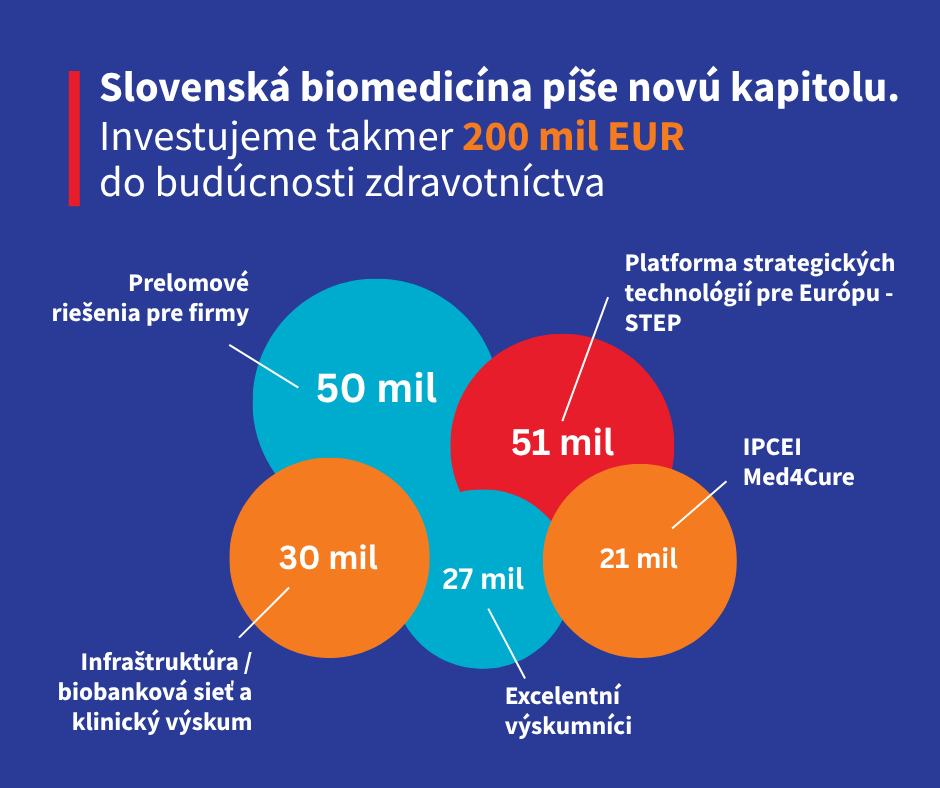 Príkladom sú aj investície do relevantných európskych výskumných infraštruktúr ESFRI (Európske strategické fórum pre výskum a inovácie), ktoré zvyšujú kvalitu slovenskej vedy a poskytovania zdravotnej starostlivosti. ESFRI platformy ako sú BBMRI (biobankovanie), EATRIS (translačná medicína), ECRIN/ SLOVACRIN (klinický výskum) a ELIXIR (zdroje/dáta o živých vedách) prepájajú slovenské tímy s európskou špičkou v oblastiach biobankovania, translačného výskumu, klinických skúšaní a genomiky, vrátane interoperability dát.