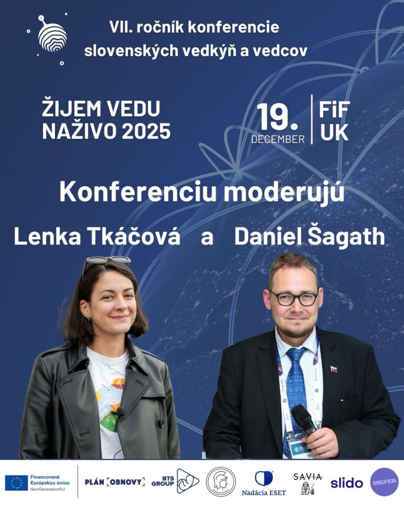 7. ročník konferencie Žijem vedu naživo sa uskutoční 19. decembra 2025 v priestoroch Moyzesovej siene na Filozofickej fakulte UK v Bratislave.