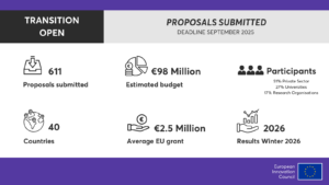 Európska rada pre inovácie (EIC) zverejnila štatistiku výzvy EIC Transition 2025, ktorá mala uzávierku 17. septembra 2025.