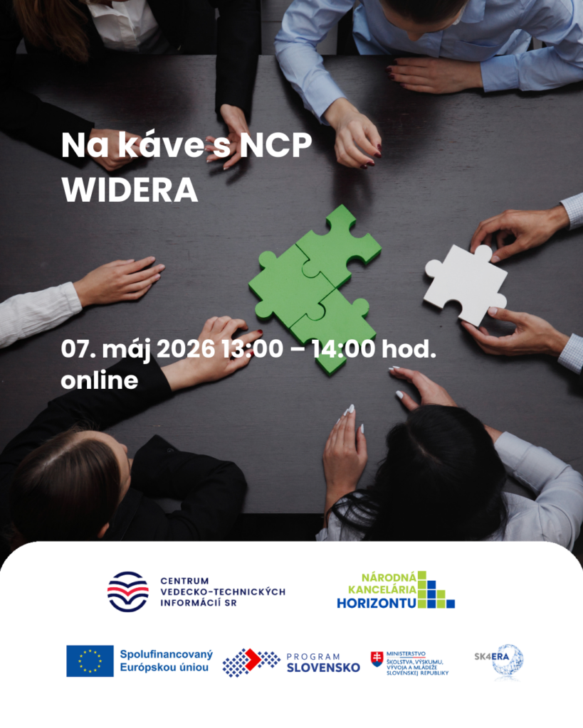Na káve s NCP 2026 WIDERA je interaktívne online stretnutie zamerané na oblasť Rozširovanie účasti a posilnenie Európskeho výskumného priestoru ERA v programe Horizont Európa.