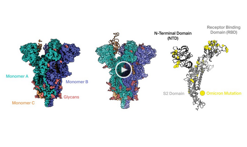 Vďaka vysokovýkonným elektrónovým mikroskopom boli vedci z École polytechnique fédérale de Lausanne (EPFL) schopní pozorovať konfiguráciu „spike“ proteínu variantu Omicron v takmer atómovej mierke.
