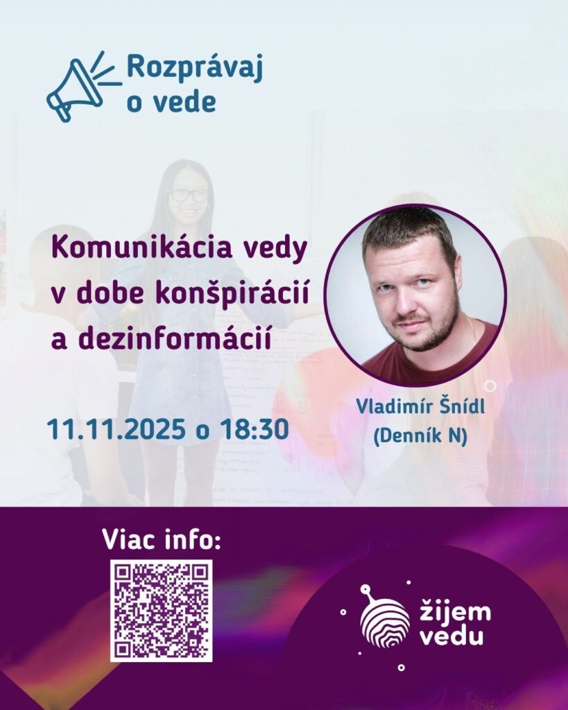 Na to, ako zvládať kontroverzie a dezinformácie pri komunikácii vedy, sa budeme pýtať novinára a spoluzakladateľa Denníka N Vladimíra Šnídla, ktorý sa dlhodobo venuje šíreniu hoaxov a dezinformácií. V knihe “Pravda a lož na Facebooku” sa venuje práve fenoménu hoaxov a konšpiračných teórií v slovenskom aj českom online priestore. V nedávno vydanej knihe “Porazme hoaxy!” naopak ponúka manuál na to, ako sa rozprávať s blízkymi o dezinformáciách”.
