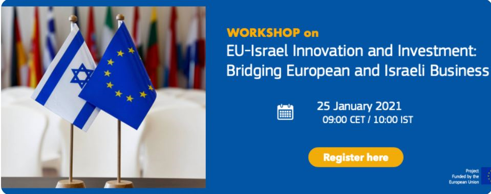 25. január 2021, 9:00-14:30. Online seminár organizovaný s cieľom podporiť spoluprácu medzi EÚ, izraelskými podnikmi, investormi a inými zainteresovanými stranami.