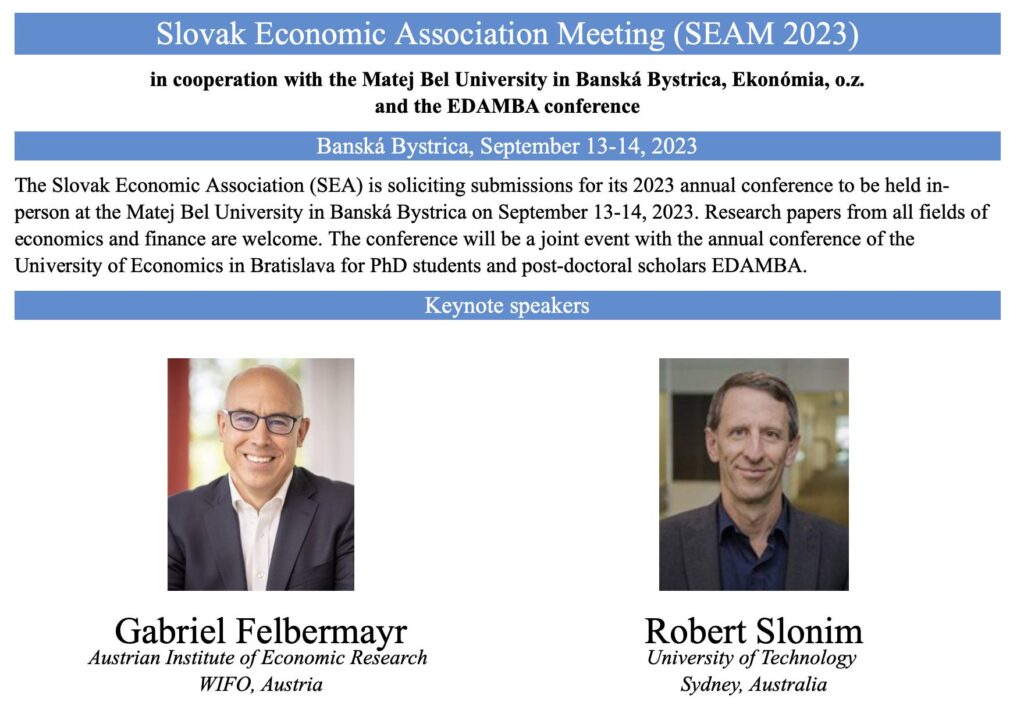 13. – 14. september 2023. Slovenská ekonomická spoločnosť (SEA) vás pozýva na konferenciu v Banskej Bystrici.
