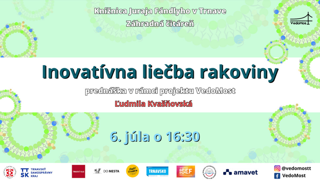 6. júl 2023, 16:30 – 18:00. VedoMost Vás pozýva do knižnice Juraja Fándlyho v Trnave na prednášku o Inovatívnej liečbe rakoviny.