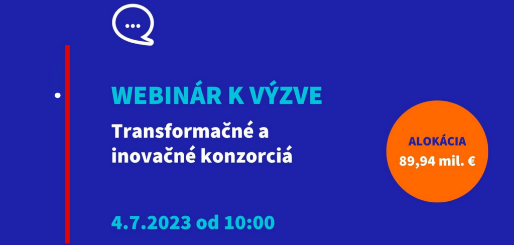 4. júl 2023, 10:00. Zaujíma vás vyhlásená výzva na budovanie Transformačných a inovačných konzorcií? Prihláste sa na webinár.