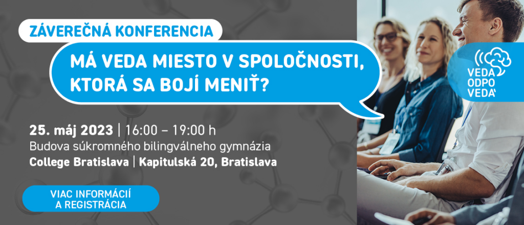 25. máj 2023, 16:00 – 19:00. Pozývame Vás na záverečnú konferenciu k projektu “Veda odpovedá”.
