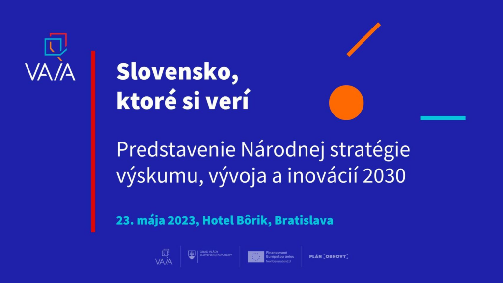 23. 5. 2023, 14:00 – 17:00. Výskumná a inovačná autorita (VAIA) v Bratislave predstaví Národnú stratégiu výskumu, vývoja a inovácií 2030.