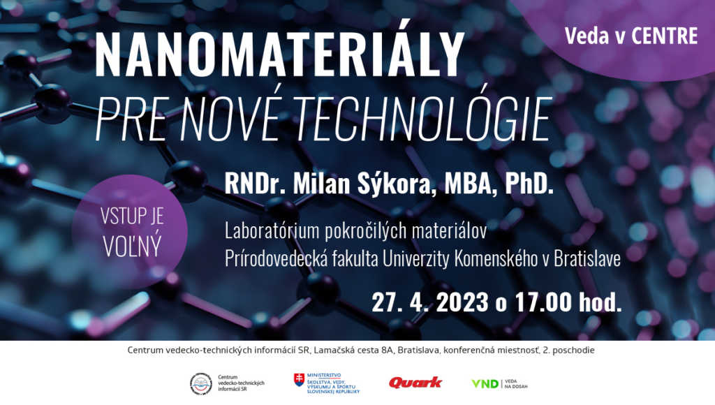 27. apríl 2023, 17:00-19:00. Veda v CENTRE. Prednáška RNDr. Milana Sýkoru, MBA, PhD z Univerzity Komenského v Bratislave.