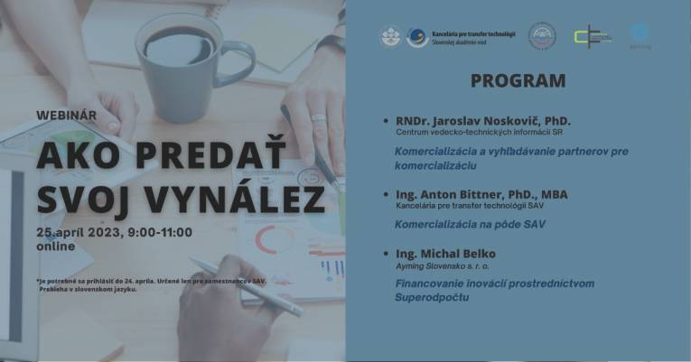 25. apríl 2023, 9:00 – 11:00. Kancelária pre transfer technológií SAV pozýva na webinár, ktorý je určený pre zamestnancov SAV.