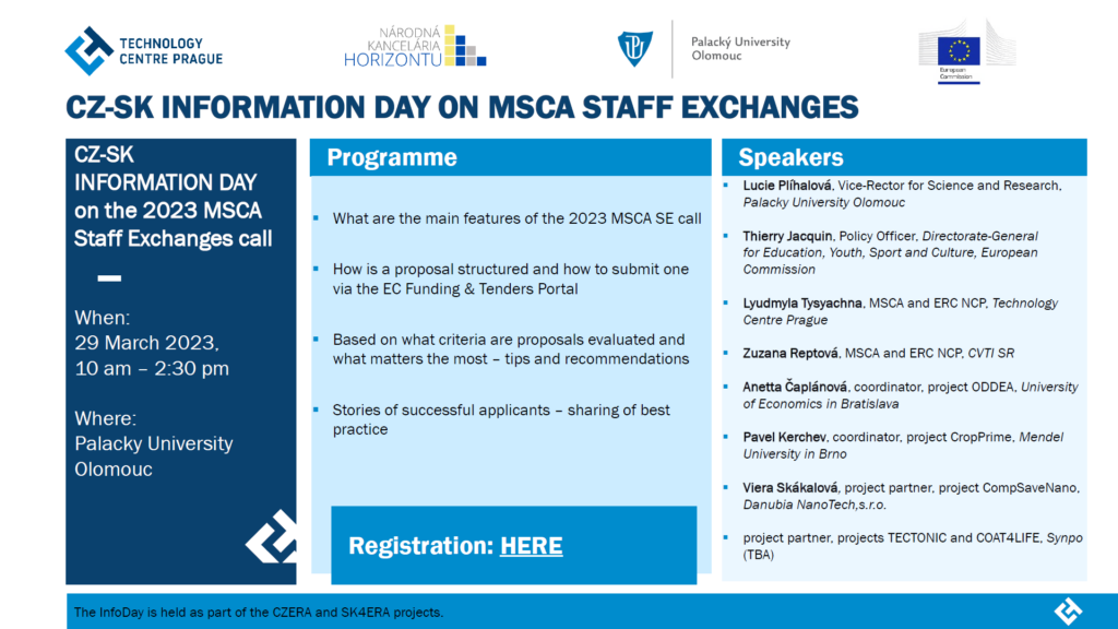 29. 3. 2023 – československý informačný deň k novej výzve z pracovného programu 2023/2024 – Národná kancelária Horizontu – Olomouc, Česko