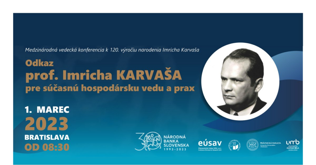 1. marec 2023, 8:30 – 17:10. Medzinárodná vedecká konferencia: Odkaz prof. Imricha Karvaša pre súčasnú hospodársku vedu a prax.