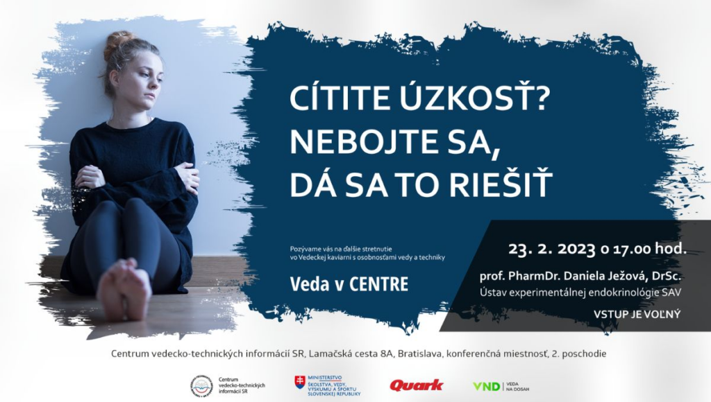 23. február 2023, 17:00. O príčinách a vplyve neprimeranej úzkosti na zdravie, ale aj nových metódach jej diagnostikovania bude prednášať vedkyňa Daniela Ježová.