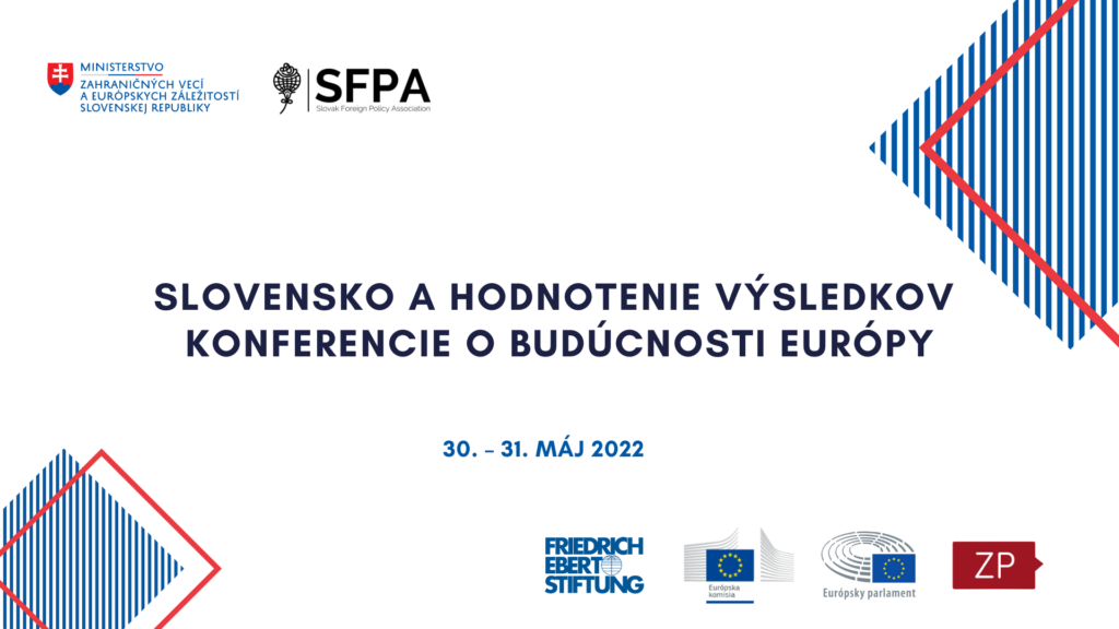 Dovoľujeme si Vás pozvať na Záverečnú hodnotiacu konferenciu o výsledkoch Konferencie o budúcnosti Európy (KOBE), ktorá sa uskutoční 30. – 31. 5. 2022. Registrácia najneskôr do 26. 5. 2022.
