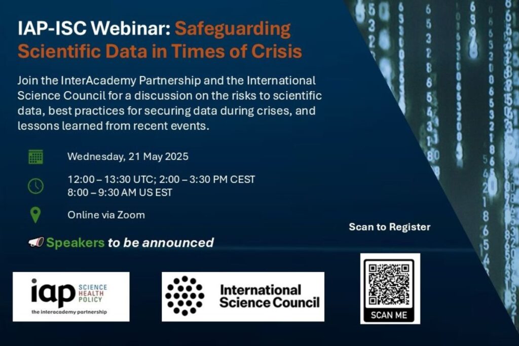 InterAcademy Partnership (IAP) pozýva na webinár o ochrane vedeckých údajov, ktorý organizuje v spolupráci s Medzinárodnou vedeckou radou (ISC). Webinár sa uskutoční v stredu 21. mája 2025 o 14:00 – 15:30 hod. Na podujatie je potrebné sa zaregistrovať.